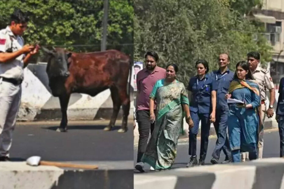 Cattle block Delhi CM’s convoy in Delhi, she steps out to inspect situation