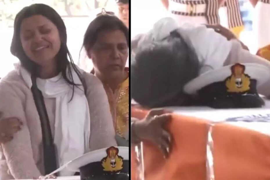 ‘Jai Hind’: Wife of slain Navy officer bids tearful adieu, hugs coffin