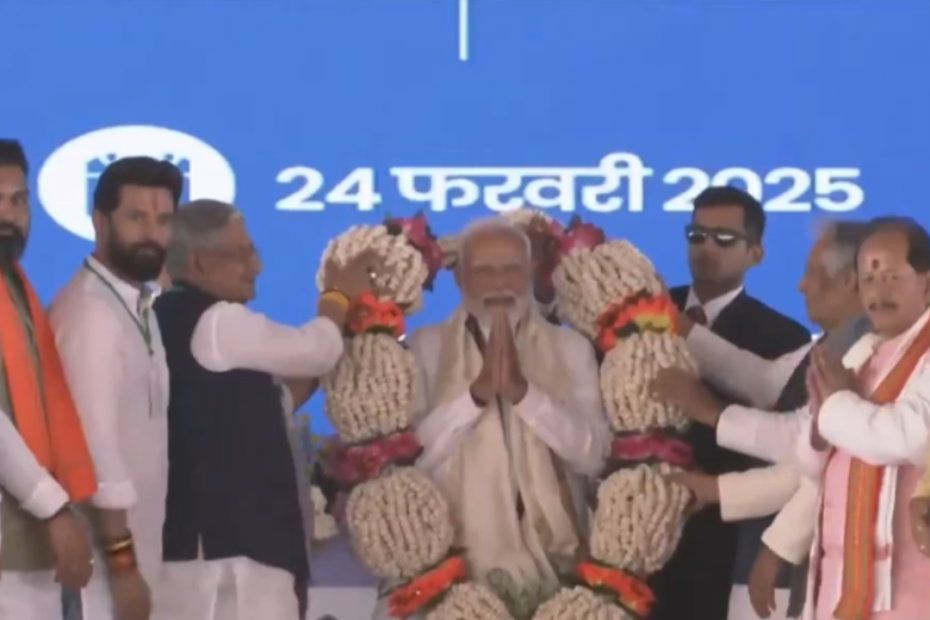 Watch: PM Modi felicitated with unique garland during Bihar event