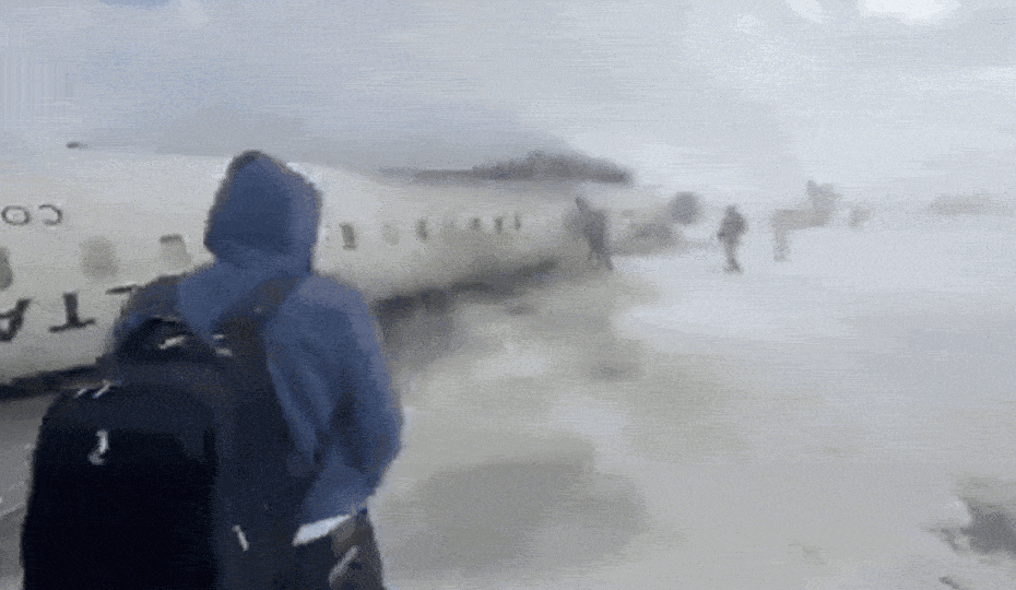 Video: Delta plane flipped upside down on snowy runway on Toronto airport